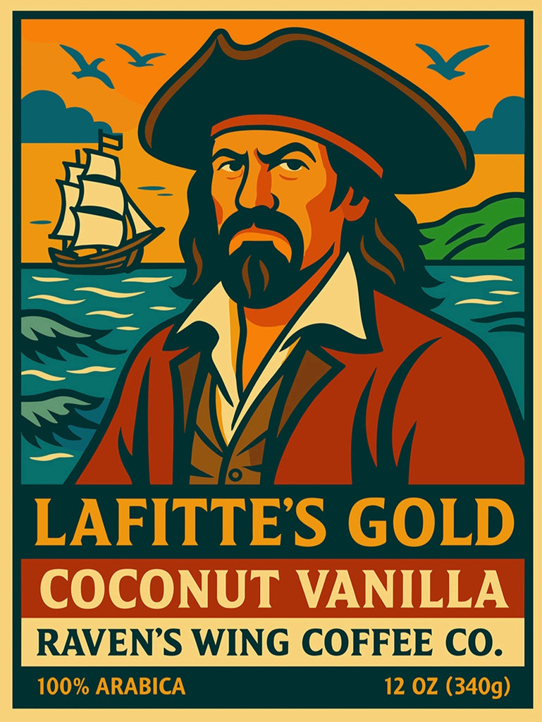 Introducing "Lafitte's Gold" coffee, a captivating blend that pays homage to the legendary pirate Jean Lafitte and his coastal legacy.